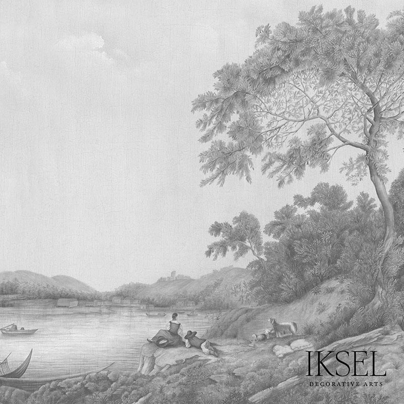 | /Originally hand-painted and inspired by artist Jean-Baptiste Pillement, this digitally printed mural in grey-tones has fast lead times. Available i...