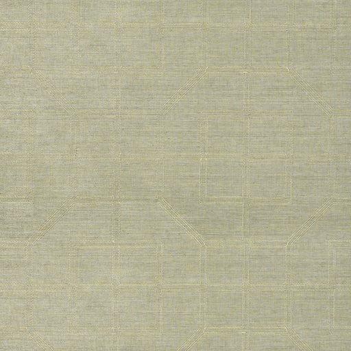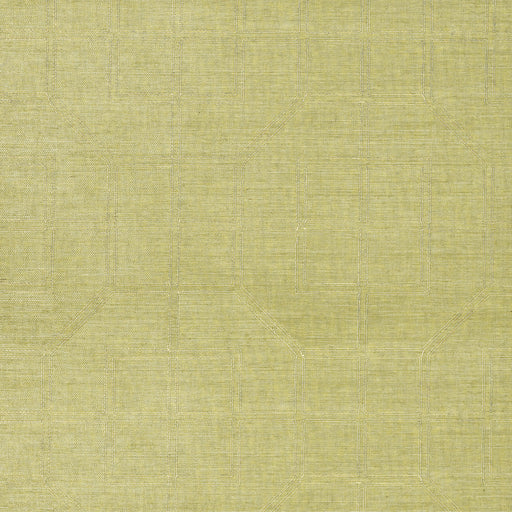 Schumacher Linyi Embroidered Fret Sisal Celery Wallpaper Sample