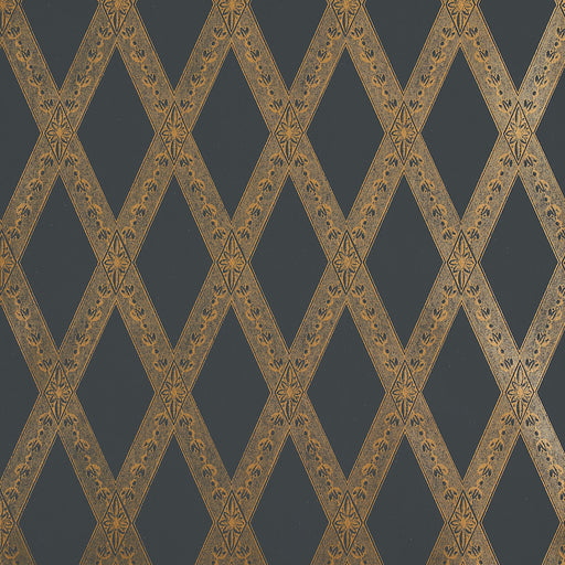 Schumacher Les Losanges Toile Gold On Black Wallpaper Sample
