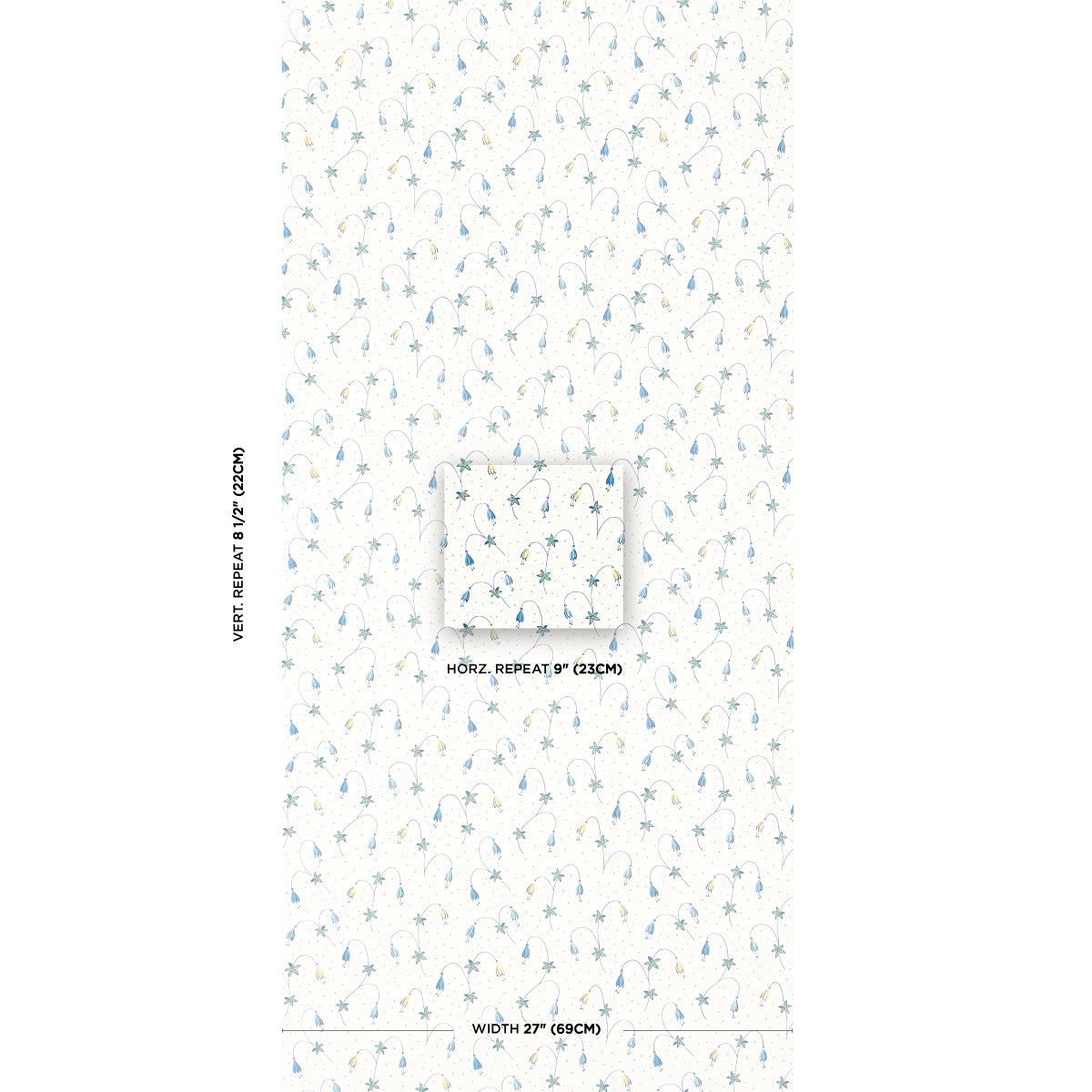 Schumacher Lolly Floral Blues Wallpaper Sample