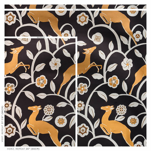 Schumacher Les Gazelles Au Bois Vinyl Noir Wallpaper Sample