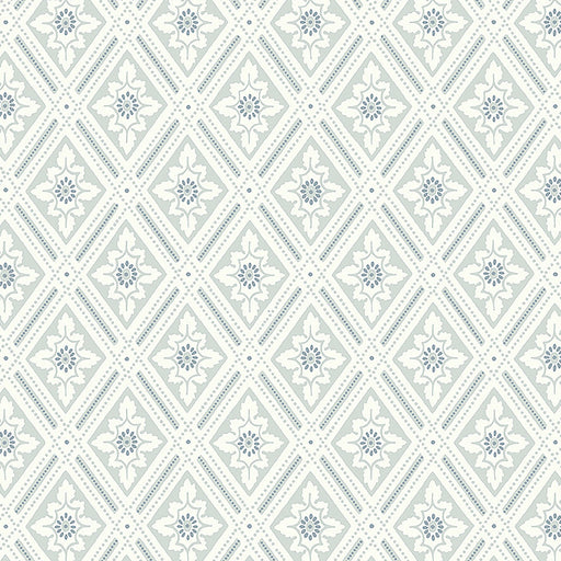 Schumacher Ephemera Teal Gray Wallpaper Sample