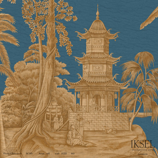 Schumacher Exotic Chinoiserie Azure Wallpaper Sample