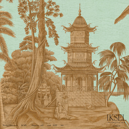 Schumacher Exotic Chinoiserie Pistachio Wallpaper Sample