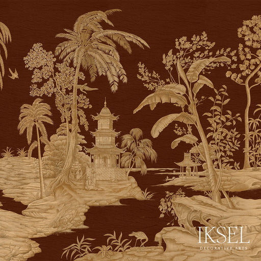 Schumacher Exotic Chinoiserie Chocolate Wallpaper Sample