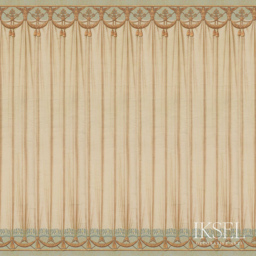 | /This azure curtain is a fine design in the manner of Percier & Fontaine. We painted and treated it in a way which allows any textile design or ...