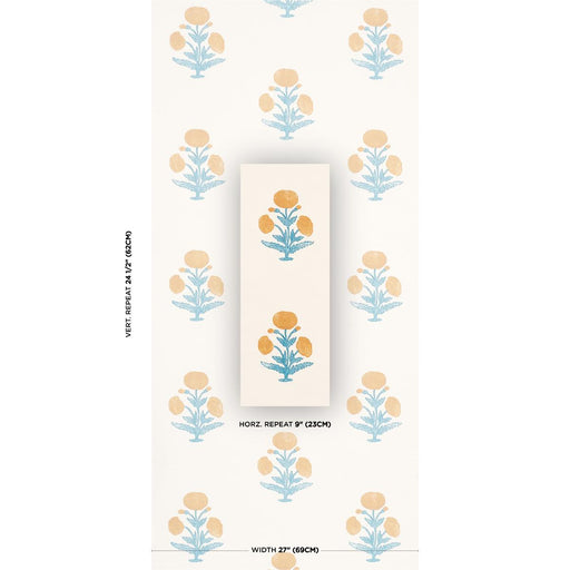Schumacher Whitney Floral Aqua Wallpaper Sample