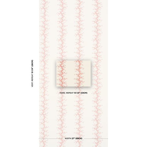 Schumacher Parvati Floral Stripe Vermillion Wallpaper Sample