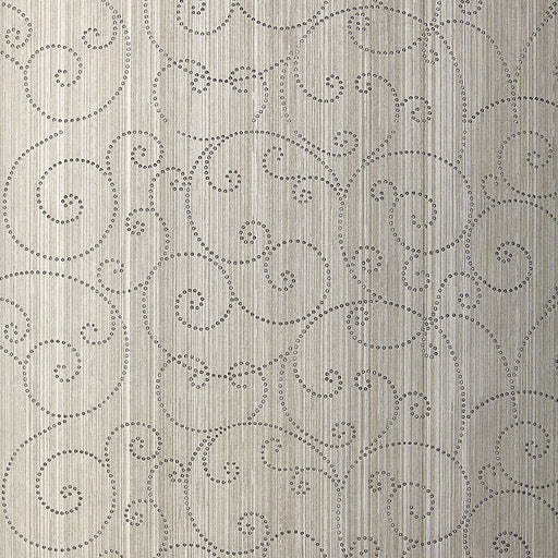 Schumacher Beaded Scroll Pewter Wallpaper
