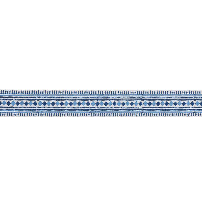 Schumacher Toula Hand Blocked Linen Tape Blues Trim Sample