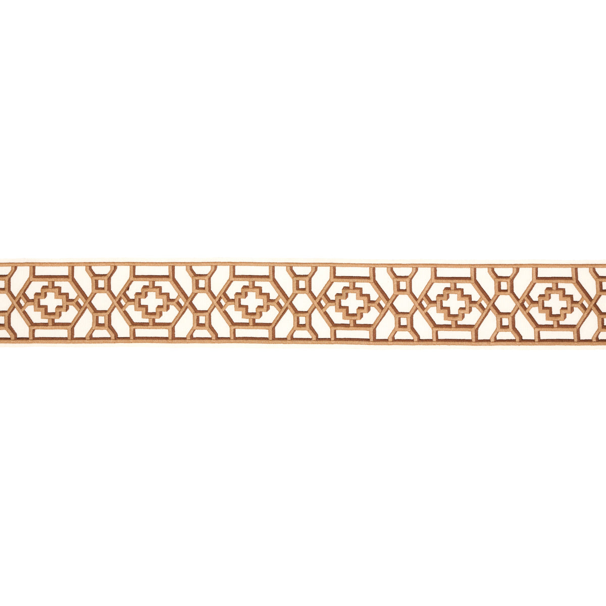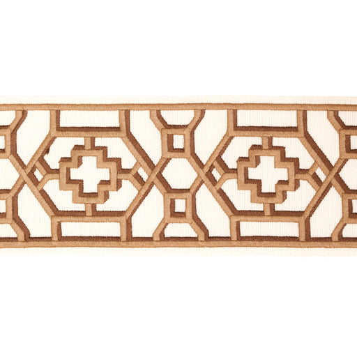 Schumacher Zanzibar Trellis Tape Camel Trim Sample