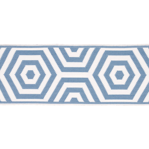 | /Hardworking and high style, Bees Knees Indoor/Outdoor Tape in sky is a mod geometric trim designed by Mary McDonald. The tight high-performance wea...