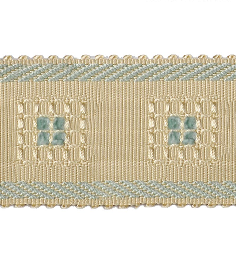 | /Scalamandre Square Link Embroidered Tape Trim, shown here in the Rain colorway, is for sale at a discount price at L.A. Design Concepts. Square Lin...
