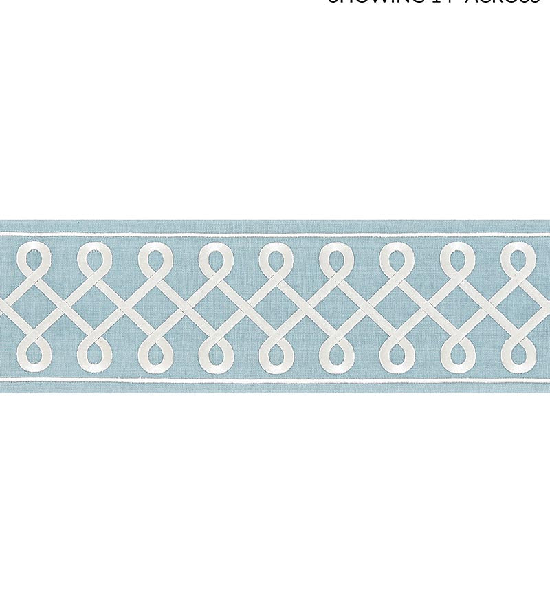| /Scalamandre Athena Embroidered Tape Trim, shown here in the Sky colorway, is for sale at a discount price at L.A. Design Concepts. Athena Embroider...