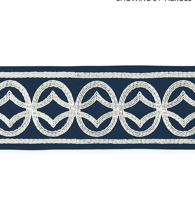 | /Scalamandre Athena Embroidered Tape Trim, shown here in the Navy colorway, is for sale at a discount price at L.A. Design Concepts. Athena Embroide...