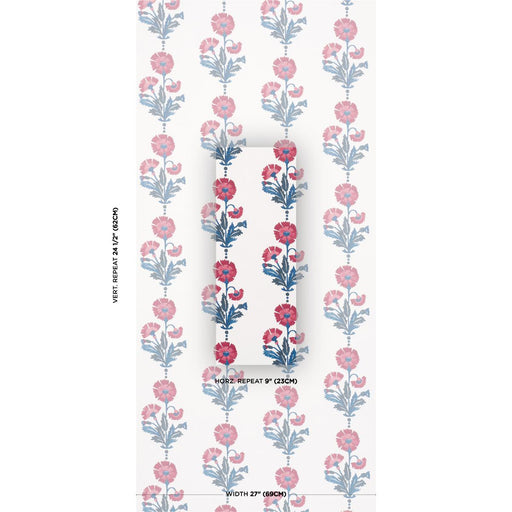 Schumacher Dianthus Print Indigo & Iron Wallpaper Sample