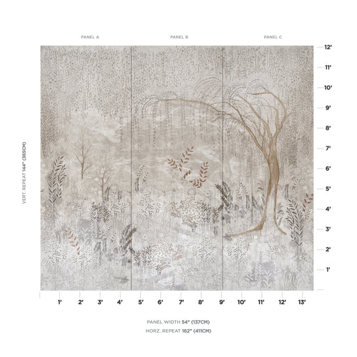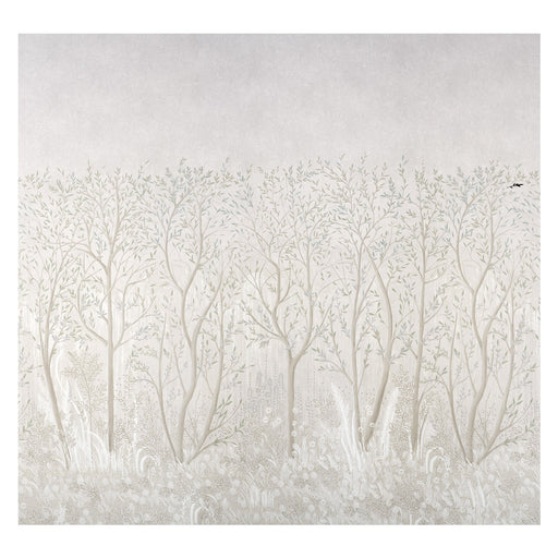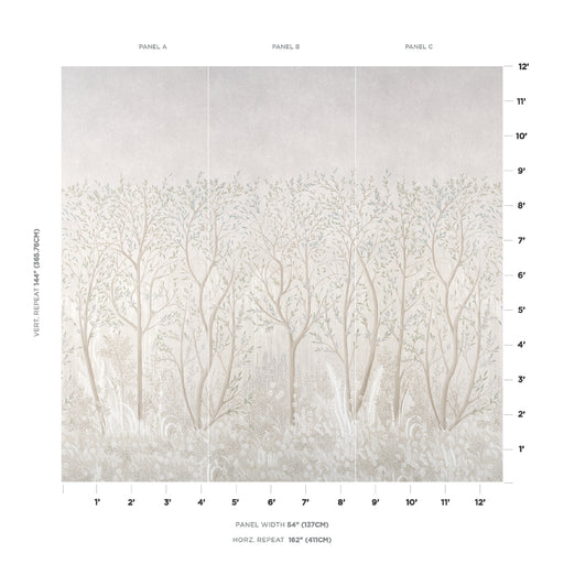 Schumacher Brindille Golden Accented Panel Set Alabaster Wallpaper Sample