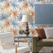 Tropic Palm Toss  Charlotte Blue & Soft Melon Wallpaper  LN31001